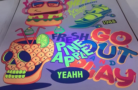 就像小时候玩的纹身贴,印在烫画纸上的图案通过高温,转印到衣服上。