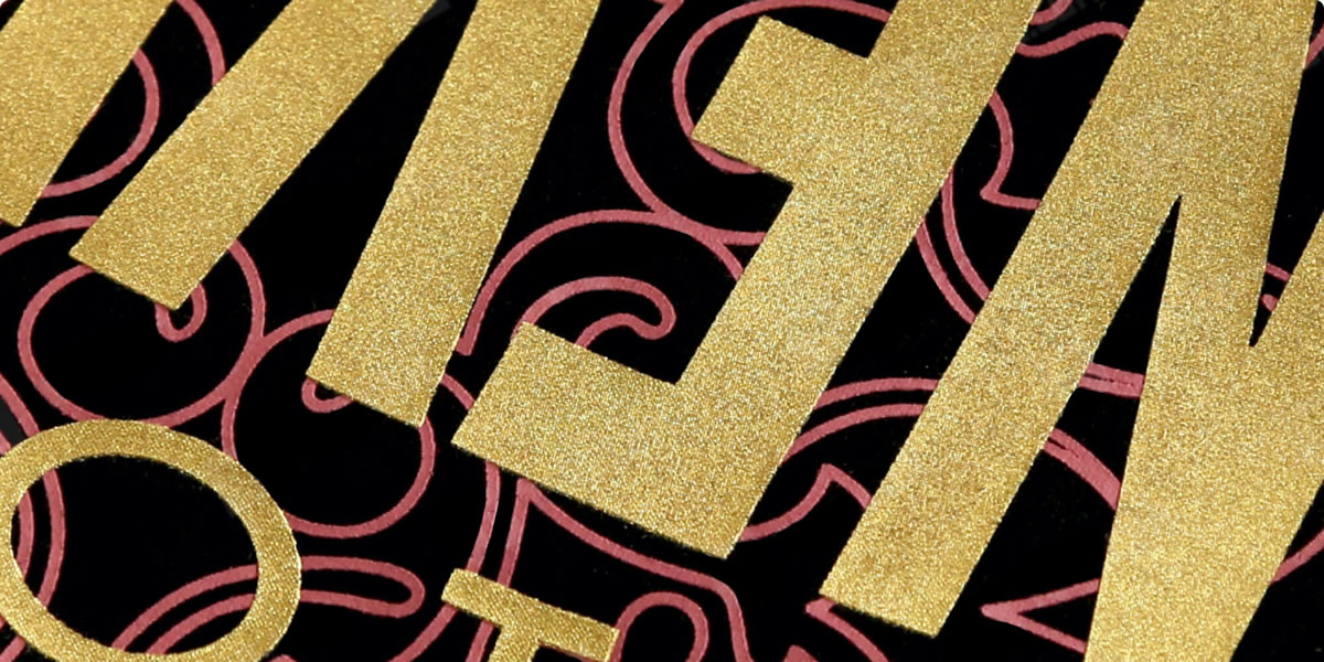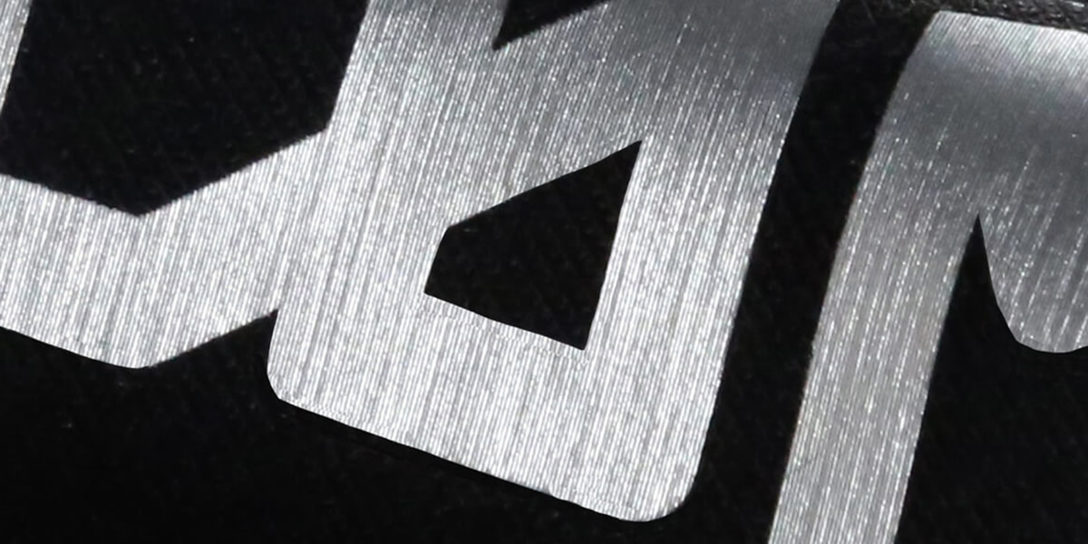 印花采用银色的PU烫画膜技术,使其呈现金属特有的拉丝纹路及质感。金属印花与灯光的完美碰撞,引领重金属新热潮。