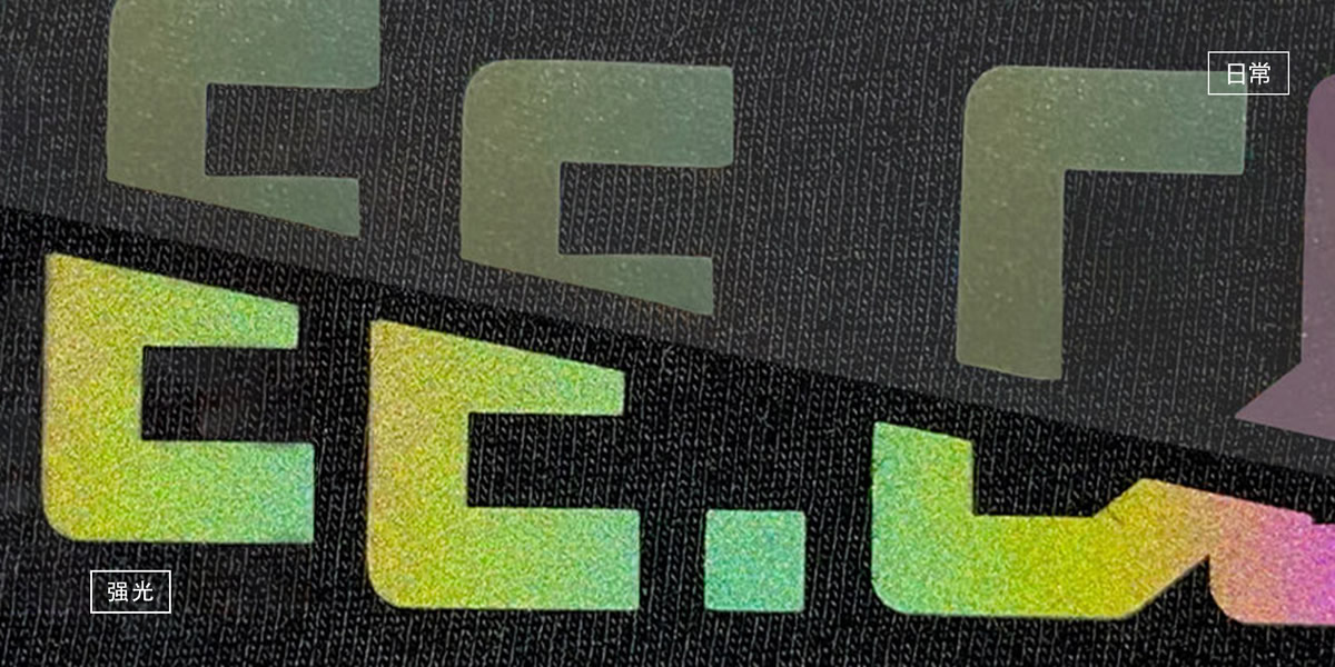 机器喷涂3M反光膜,采用激光切割雕刻,反光效果强烈,涂层平滑细腻。灯光越闪亮,印花越闪耀。