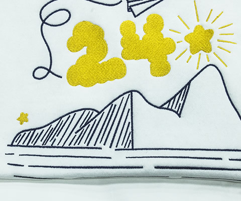 使用针和线把需要的图案设计和制作添加到衣服上。