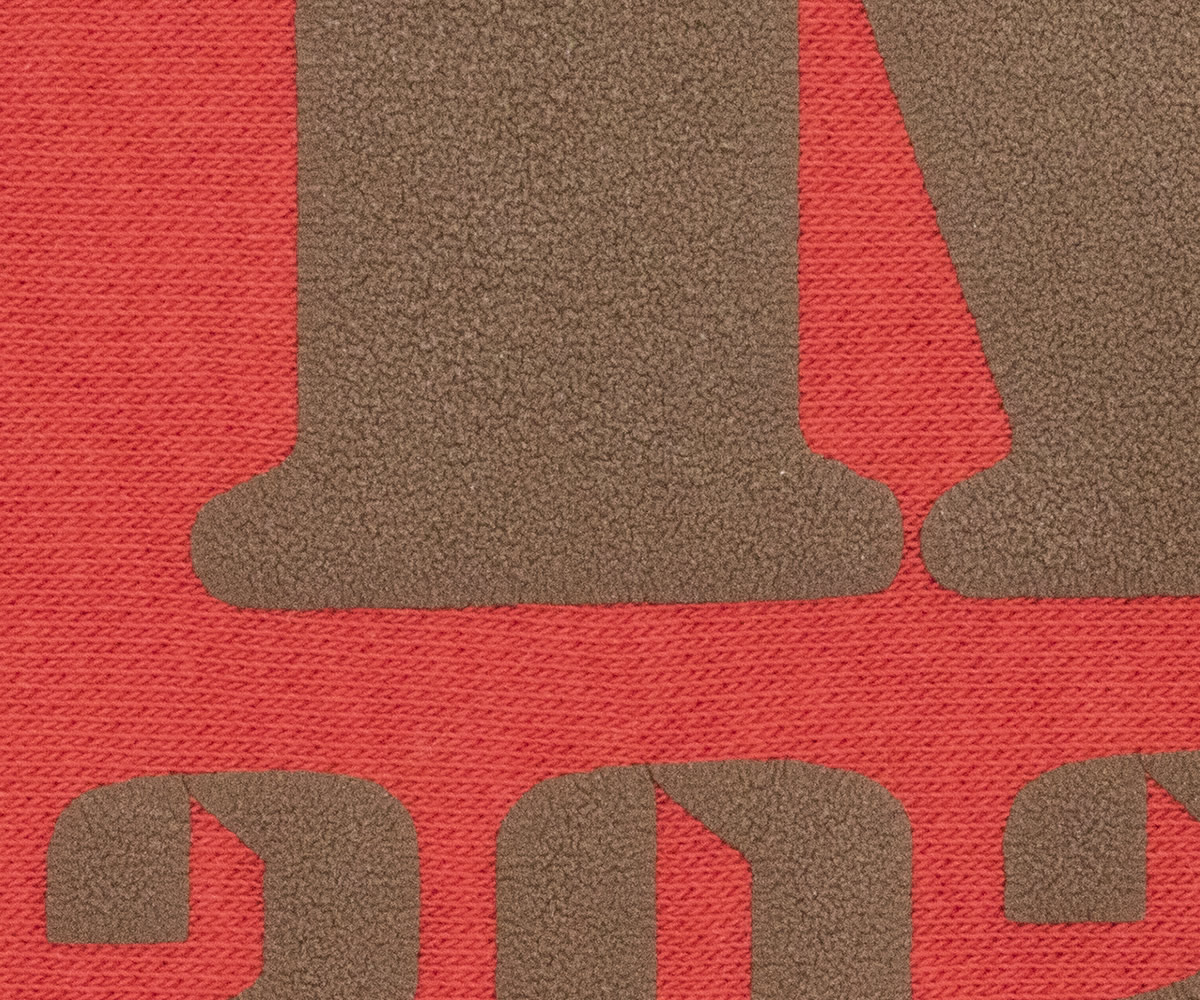 毛茸茸的触感,细致高级 先将图案进行丝印,再贴上绒毛经过高温热压固定。 印花有点毛茸茸的触感,仿若初夏的水蜜桃。