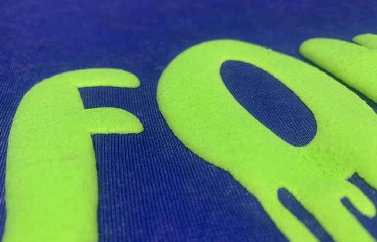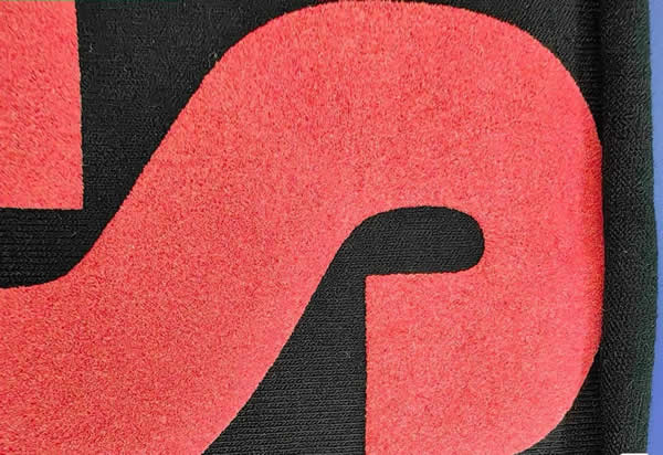 这种工艺特别适合应用于棉布、尼龙布等面料,尤其是在卫衣和棒球服上效果更佳。由于绒面发泡图案的立体感,如果印制在较薄的底衫上,如T恤,可能会显得过于厚重。